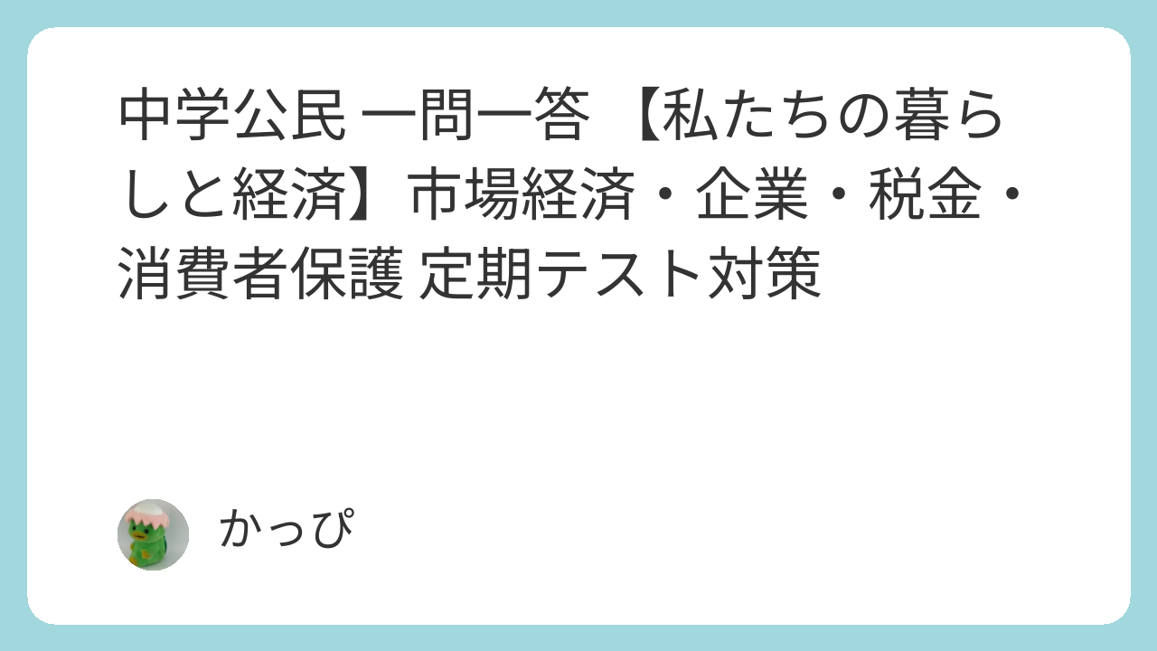 中学公民 一問一答 20問【私たちの暮らしと経済】市場経済・企業・税金・消費者保護 定期テスト対策