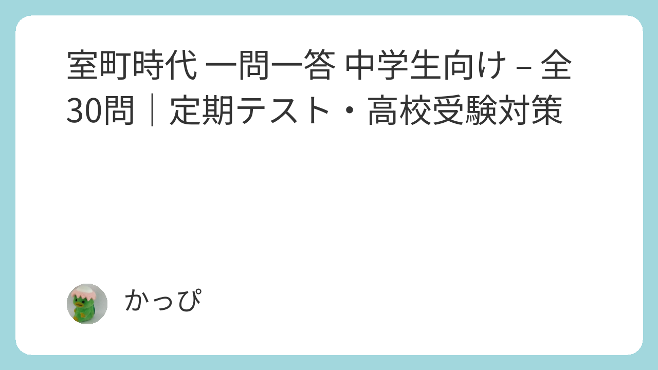 室町時代 一問一答 中学生向け – 全30問|定期テスト・高校受験対策